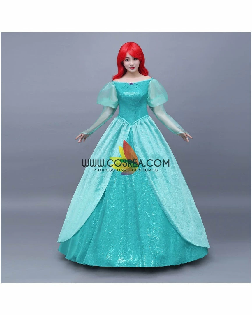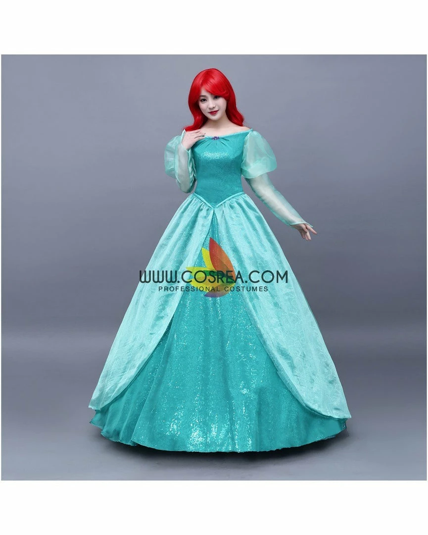 Cosrea Disney Inspired Little Mermaid Ariel Turquoise Sequin Tulle Cosplay Costume