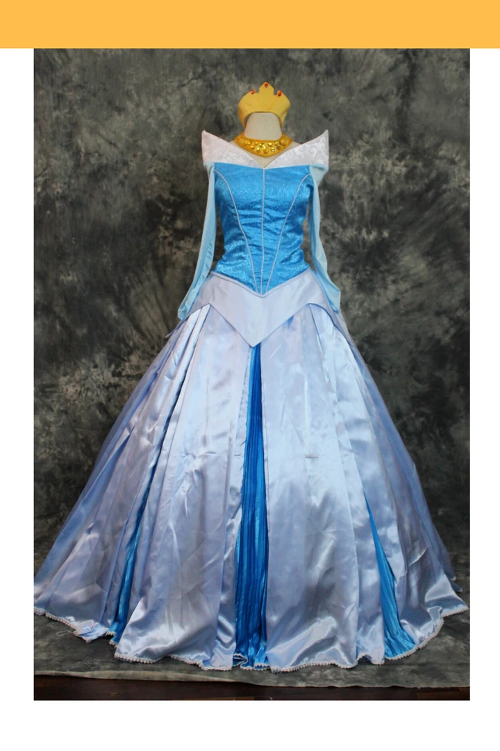 Cosrea Disney Inspired Sleeping Beauty Aurora Blue Brocade Satin Cosplay Costume